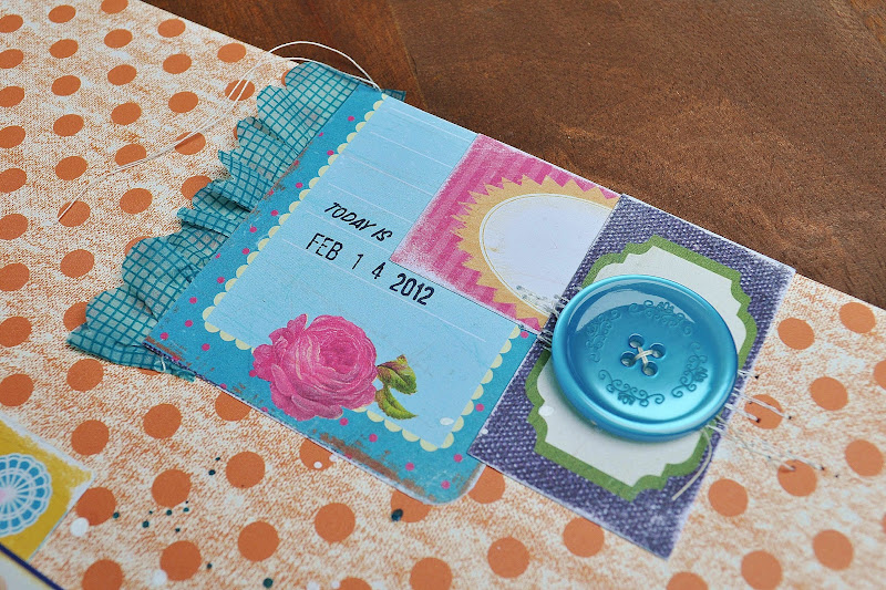 Anyhoo...I created this layout to feature the self portraits we took on Valentine's Day. My little family. I love that my hubby and our furry friend, Miss Griffin, are such good sports and humor my self portrait requests! We celebrated Love Day in the comfort of our own home...a wonderful, relaxing evening. King crab legs, chocolate brownie sundaes and an episode of The Biggest Loser. It was perfect.The layout was created with product from the January Hip Kit, which is still available here. I totally love that orange polka dot paper from Amy Tangerine, the Crate Paper Accent Cuts from the Random collection, the Crate Paper buttons (love, love, love all of their buttons!) and the fun tissue trim from Studio Calico! Oh...and one of my other favorite things? The SMASH date stamp. I love this thing so much that I bought the one from Dear Lizzy...and then was delighted to receive an exclusive one from Studio Calico in my last SC kit. Yippee!